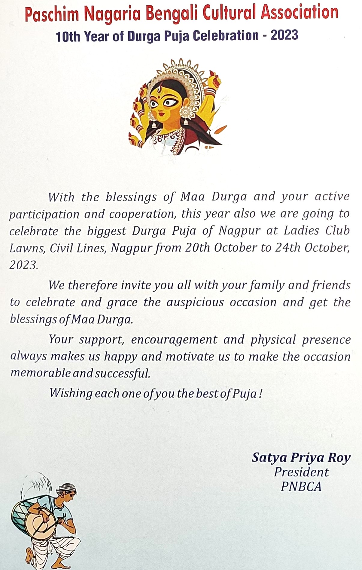 Our Journey started in the year 2014 at the IWWA Hall with Durgotsava, the big Bengali festival. During the past nine years, PNBCA has grown and flourished in every aspect and let's hope for more in the years to come. Our enthusiastic members are our strength. My sincere thanks to all who have given their time, dedication and financial contribution to make PNBCA "A Strong Organization".